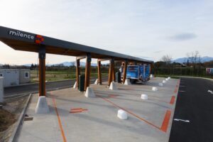 - Safe parking: Secure and gated, accessible for electric trucks only. Trucks can be parked and charged overnight.Â
