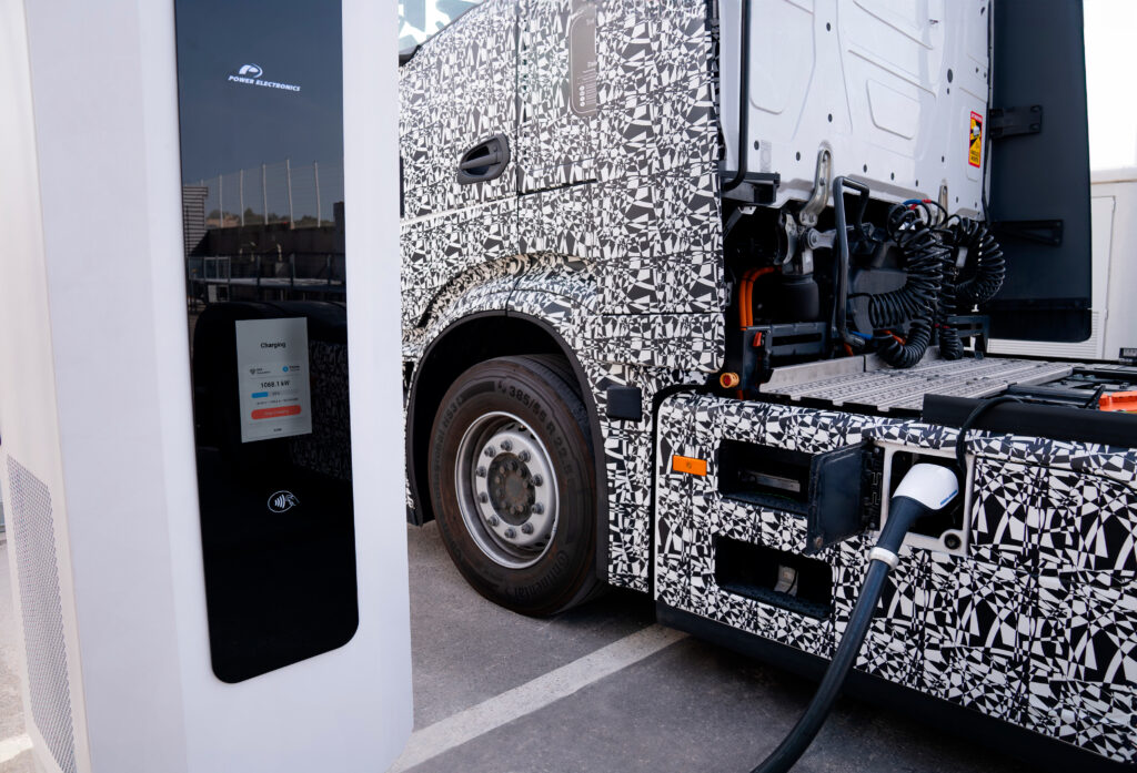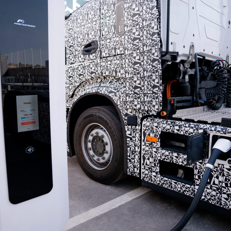 Amsterdam, July 16 2024 – Milence, the joint venture between Daimler Truck, the TRATON GROUP and Volvo Group successfully tested a new Megawatt Charging System (MCS) solution together with Power Electronics, the leading manufacturer of solar inverters for photovoltaic plants and world leader in energy storage, and leading company in the electric mobility sector, after entering a partnership and planning to roll out this new technology for the first time with Milence, in what will be one of the first commissioning in Europe for this electric vehicle charger. This test marks a significant milestone in the evolution of electric truck charging technology, achieving a charging power of 1,100 kilowatts.
