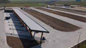 Future development phases will bring additional chargers and greater capacity to accommodate growing demand. The hub is secured with fencing, gated entry, and camera surveillance. Additionally, Milence’s signature design elements, including arches and a roof structure, make the hub both functional and visually distinctive.