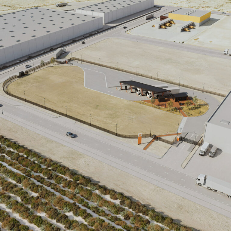 • The charging hub is strategically located in the Zaragoza Logistics Platform (PlaZa), one of the largest logistics areas in Spain, and is connected to both the Mediterranean and Atlantic TEN-T corridors