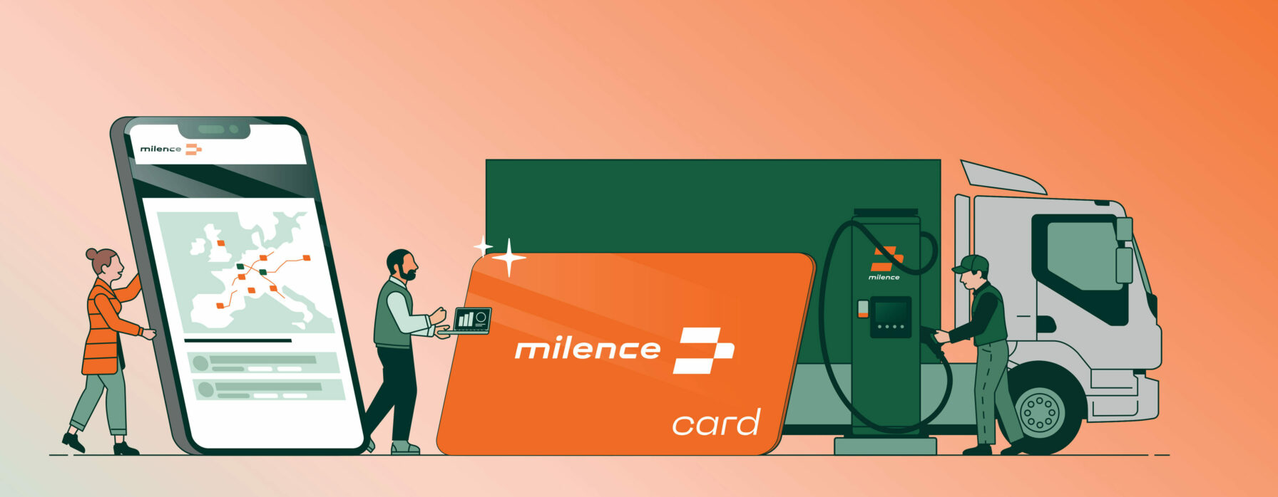 Bekväm åtkomst och betalning för alla Milence-tjänster. Skaffa ditt kostnadsfria Milence-laddningskort och ladda i Europas största offentliga nätverk för tunga transporter.